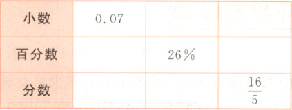 (1)(从上往下,从左往右$)0.26 3.2 7% 320% \frac{7}{100} \frac{13}{50}$