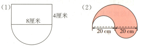 (2)3.14×(20+20)÷2+3.14×20=125.6(cm)