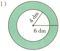 $2.(1)3.14×6^{2}-3.14×4^{2}=62.8(dm^{2}) $