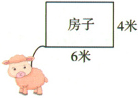 2. 一间房子的占地形状是长方形,长 6 米,宽 4 米,房子周围是草地。王大爷将一只羊拴在房子的外墙角处(紧靠地面),如图。已知拴羊的绳子长 3 米,这只羊能吃到草的面积有多大?