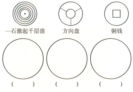 4. 开放题如图的图形都是由圆添上几笔后构成的,请你留心观察生活,在如图的圆上添上几笔,设计成生活中的一些物品图或标志。