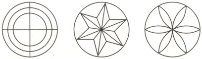 6. 探究题在美丽乡村建设中,桃源村计划在一块圆形空地上种植四种不同的花卉。为了便于管理和美观,相同品种的花集中种植,且每种花所占的面积相同。请你设计两种不同的方案。