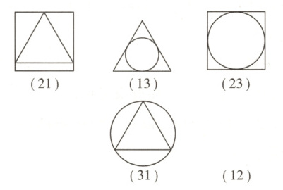 解析:由题图1和题图2,知三角形代表数字1,由题图2和题图3,知圆形代表数字3,由题图1和题图3,知正方形代表数字2,据此可以得出数字12是三角形里面一个正方形。