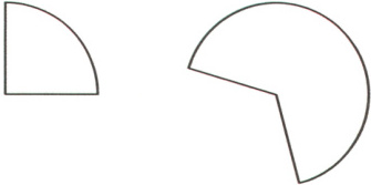 7. 空间观念 把一张圆形纸片对折两次,折成圆心角是90°的扇形,并在中央打孔(如图),请你画出这张纸片展开后的样子。