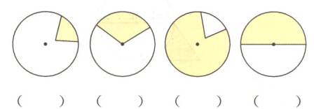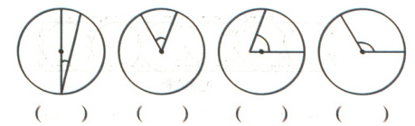 1. 几何直观 下面各图中的角哪些是圆心角,在括号里打“√”,并量出它的度数。
