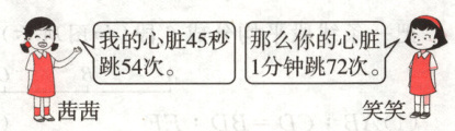 4.笑笑说得对。因为茜茜说她的心脏跳动次数与时间的比是54:45=6:5,笑笑说茜茜的心脏跳动次数与时间的比也是72:60=6:5。