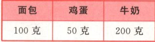 答:奇奇的早餐面包、鸡蛋、牛奶是按2:1:4的质量比搭配的。