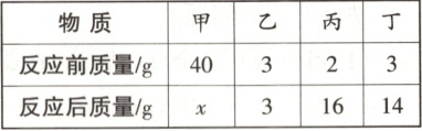 例 4 甲、乙、丙、丁四种物质在密闭容器中混合,在一定条件下反应一段时间,测得反应前后各物质的质量如右表。