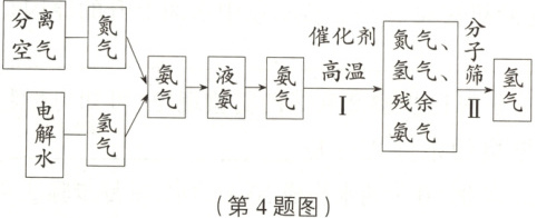 (写一条)。(8)氢气不能广泛应用的原因之一是储存困难。用液氨储存氢气是一种新型的储氢技术,部分工艺流程如图所示: