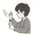 闻气体的正确操作:用手轻轻地在瓶口扇动,使极少量的气体飘进鼻孔(如右图)。
