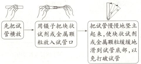 ,还可用纸槽。(1)取用密度较大的块状试剂或金属颗粒(“一横、二放、三慢立”)。