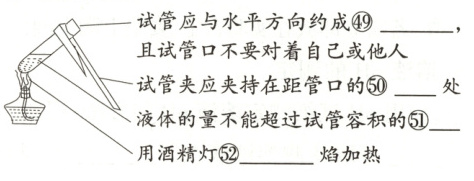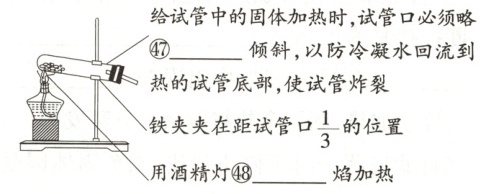 2. 液体的加热:49. 45°;50. $\frac{1}{4} \sim \frac{1}{3}$;51. $\frac{1}{3}$;52. 外