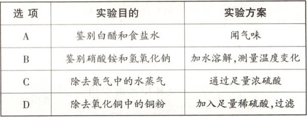[文字叙述][24·河北5题] 下列实验方案错误的是()