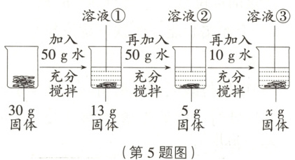 (2)根据上述分析可知,溶液②烧杯底部5g固体为不溶于水的杂质,所以x的数值是5。