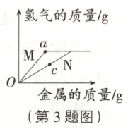3. C 提示:题图可以比较加入金属的质量与产生氢气的质量大小关系,但无法比较金属活动性强弱,故C项不正确。