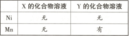 3. 金属$Ni$、$Mn$分别放入另外两种金属$X$、$Y$的化合物溶液中,反应的结果和有无金属析出的情况如表所示。它们的金属活动性由强到弱的顺序为 (