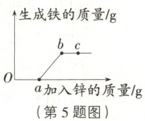 5. 向硝酸镁、硝酸亚铁、硝酸铜的混合溶液中逐渐加入一定量的锌粉,生成铁的质量与加入锌粉的质量关系如图所示。下列说法正确的是 (