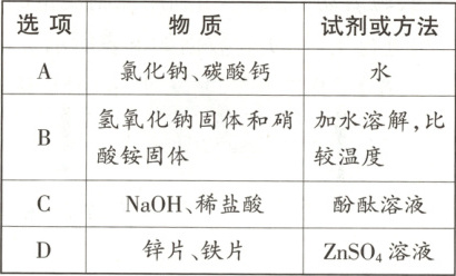 2.D 提示:锌片和铁片都不能和 $ZnSO_4$溶液反应,都无明显现象,不能区分,故D项符合题意。