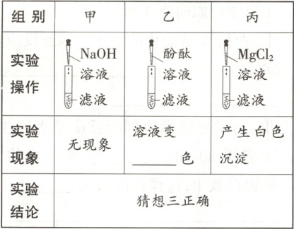 【实验探究】甲、乙、丙三个小组的同学分别取上述适量滤液于试管中,进行如下探究实验。