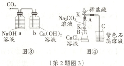 (6) 如图③,向 NaOH 溶液中缓慢通入少量 CO₂气体能证明 CO₂和 NaOH 溶液发生了反应,则应观察到