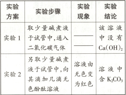 (2) 固色后布料表面会留有碱煮液,碱煮液中除一定存在的物质外,还可能含有 K₂CO₃或 Ca(OH)₂,为验证碱煮液中溶质的成分,同学们设计了以下实验方案: