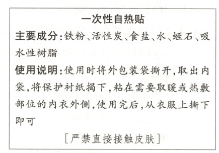 [25·新疆节选]活动小组对自热贴发热原理进行探究,某品牌一次性自热贴说明书如图所示。