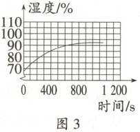 (4)将温度传感器改为湿度传感器,重复实验三,得到的数据如图3所示,造成湿度逐渐增大的原因可能与自热贴中有关的成分是