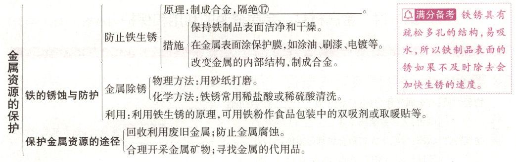 ①导热 ②延展 ③银白 ④大 ⑤低 ⑥含碳量不同 ⑦铝 ⑧钙 ⑨铁 ⑩汞 ⑪钨