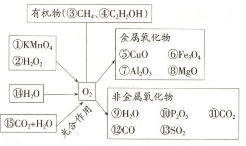 ⑨$2H_{2} + O_{2}\stackrel{点燃}{=\!=\!=}2H_{2}O$