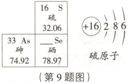 9.D 提示:决定元素种类的是质子数(即核电荷数),硫元素和硒元素的本质区别是质子数不同,故D项错误。