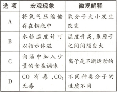 6.A 提示:将氧气压缩储存在钢瓶中,氧分子间的间隔发生改变,故A项错误。