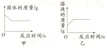 (选填“增大”或“减小”),直至完全反应后保持不变。②溶液质量变化(图乙):溶质由