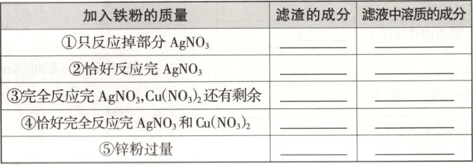 (3)第3步:分情况。根据加入锌粉的质量,分析滤液、滤渣的成分(填化学式)。