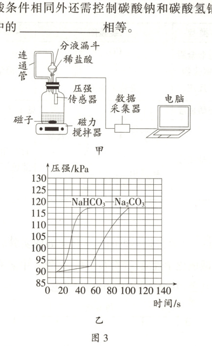 ③瓶内最终压强相等,实验时除了控制稀盐酸条件相同外还需控制碳酸钠和碳酸氢钠中的____相等。