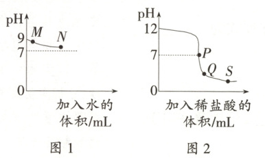 例1 [25·河北10题] 常温下,某小组同学向氢氧化钠溶液a中加水,向氢氧化钠溶液b中逐滴加稀盐酸,利用pH传感器分别测得溶液pH的变化如图1、图2所示。下列说法正确的是(