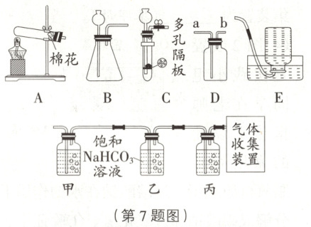 7. 如图是实验室制取CO₂的常用装置,某些大理石中含少量硫化物,使制得的CO₂中混有H₂S气体。欲获取纯净、干燥的CO₂需对发生装置中产生的气体进行除杂,实验装置如图。