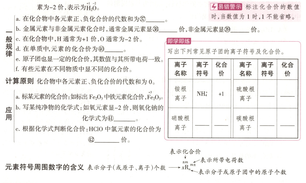 ㊱正上 ㊲0 ㊳正 ㊴负 ㊵0 ㊶$Na_2O$ ㊷+1 即学即练 $SO_4^{2-}$ -2 $NO_3^{-}$ -1 $CO_3^{2-}$ -2