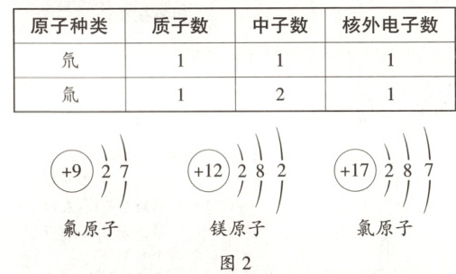 下表是氘和氚的原子构成,图 2 是氟、镁、氯的原子结构示意图。