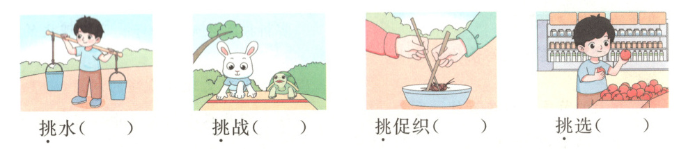 三 新角度 根据多音字字义卡,结合图片的内容选择正确的义项。(填序号)