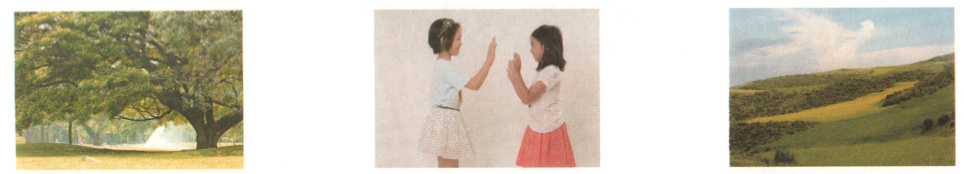 下面是班级摄影展上的几幅作品,请你将作品的介绍词补充完整。