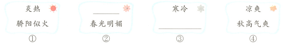 三 下面是状状制作的四张季节词语卡片,请你根据要求完成练习。