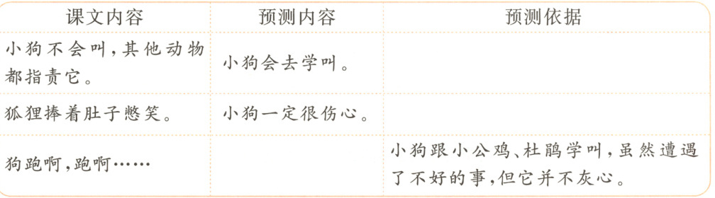 五 新思维 照样子,根据提示预测课文中小狗的另外两种结局。
