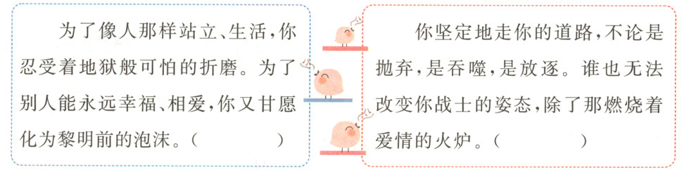 1.这点儿奶酪渣是刚才弄掉的,丢了可惜,你吃掉它吧! 2.他对弱小同伴的关心 3.C 4.示例:看着诱人的奶酪,小蚂蚁们虽然又累又饿,但仍耐心等待着蚂蚁队长的指挥。这时,蚂蚁队长说:“请大家依次排队领取食物!”小蚂蚁们迅速排好队,依次领到了奶酪。而蚂蚁队长则默默地将最小的一块留给了自己。