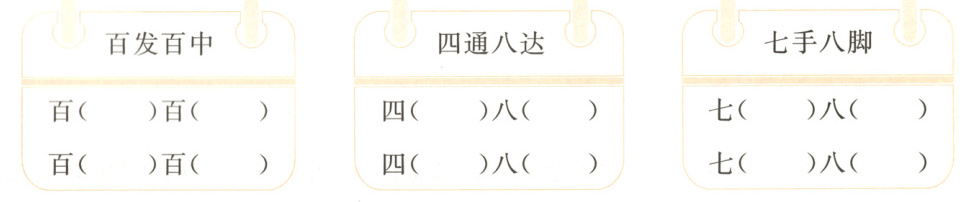 四 才才根据成语的特点分类整理了如下成语卡,你能填一填类似的成语吗?