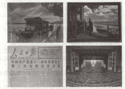 照片三:党的十一届三中全会召开。意义:重新确立了马克思主义的思想路线、政治路线和组织路线,实现了党和国家中心战略转移,开启了改革开放和社会主义现代化建设新时期,实现了新中国成立以来党的历史上具有深远意义的伟大转折。