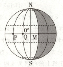 (1)题,由图可知,此时晨昏圈与经线圈重合,图中M点即将进入黑夜,弧NMS是昏线,弧NMS位于0°经线以东,其经度为60°E。第