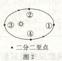 7.B 由图2中的日地距离可知,甲为冬至,乙为春分,丙为夏至,丁为秋分,B正确。
