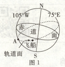 2021年6月17日9时22分,搭载神舟十二号载人飞船的长征二号F遥十二运载火箭,在酒泉卫星发射中心准时点火发射,顺利将3名航天员送入太空,飞船绕地飞行轨道与地球赤道的夹角为42°24',绕地球一圈需要90分钟。读神舟十二号飞船绕地轨道及方向示意图(图1)和二分二至日示意图(图2),回答9~10题。