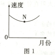图1、图2分别为地球公转速度随月份变化图和二分二至日地球在公转轨道的位置示意图。据此回答7~8题。