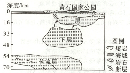 1.A 读图可知,上层熔岩库深度在16千米左右,大陆地壳平均厚度为39~41千米,所以图中上层熔岩库位于地壳,A正确。